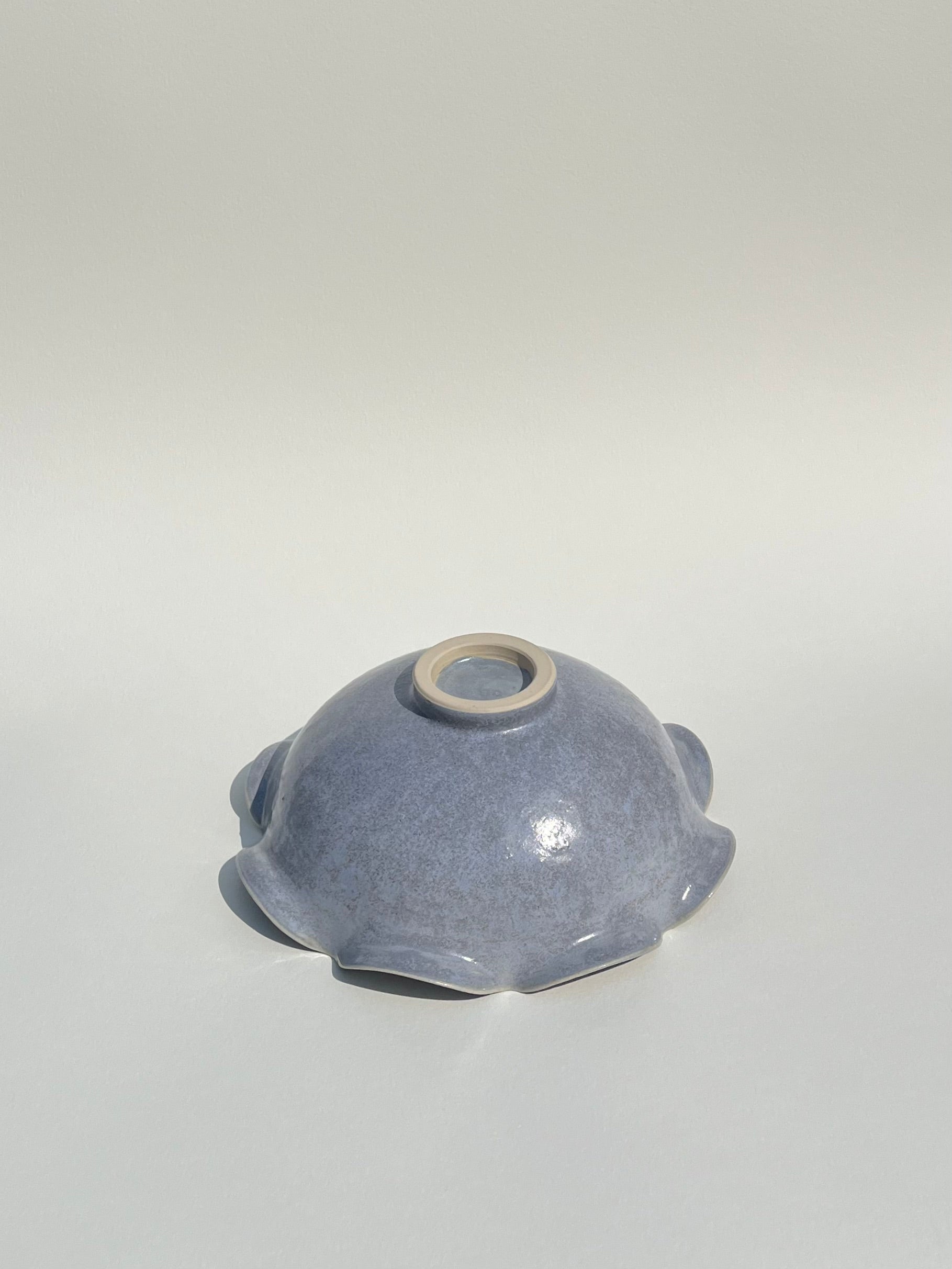 A handmade bowl, perfect for arranging flowers, fruit or serving food, thrown on the wheel in my little studio, and hand-shaped to form its frilly edge. After the first bisque firing the bowl was coated in a lilac coloured glaze, and fired again to 1220°C to achieve a unique surface and finish.
